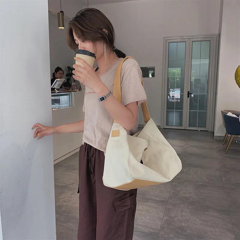 Stay stylish this summer with this casual canvas shoulder bag for women. It features a spacious design that can hold all your essentials comfortably.