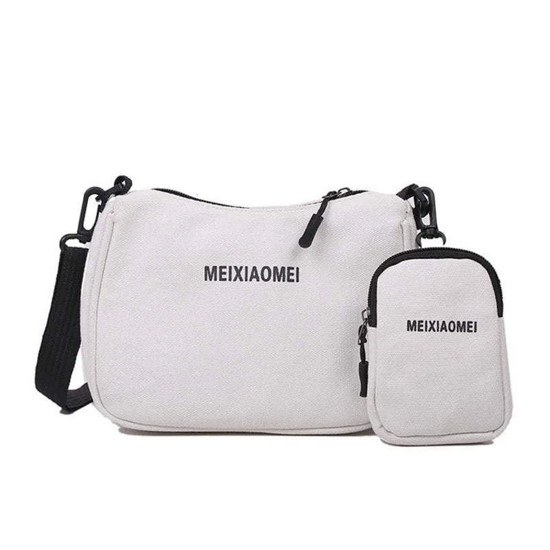 Women's Canvas Shoulder Bags with Mini Purse Pendant