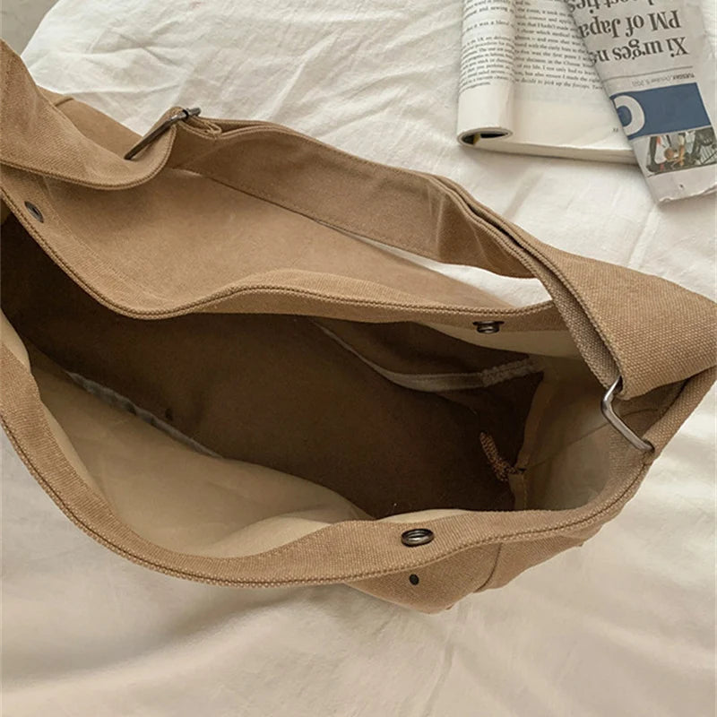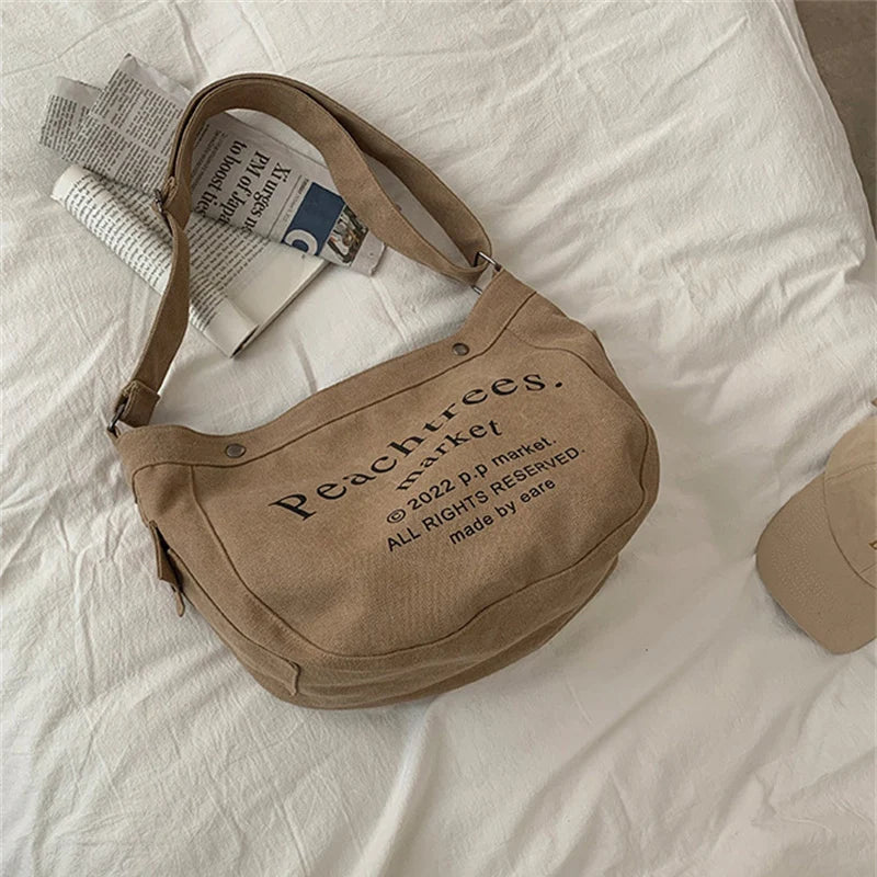 Stay stylish and organized with this shoulder bag featuring casual letters print design. Made of durable canvas, it offers a large capacity for your essentials.
