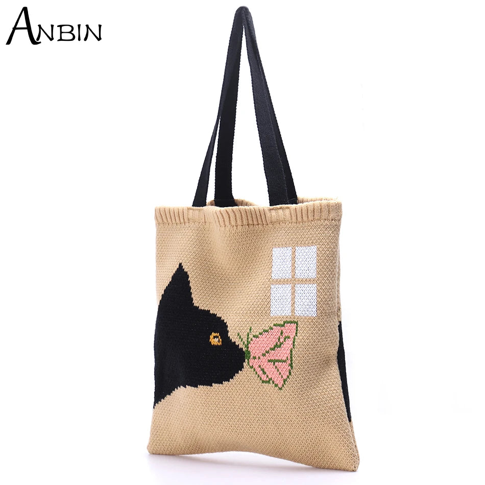 Stay stylish with this adorable handbag that features a cute cat pattern. Perfect for knitting or crochet projects. Made of high-quality materials.