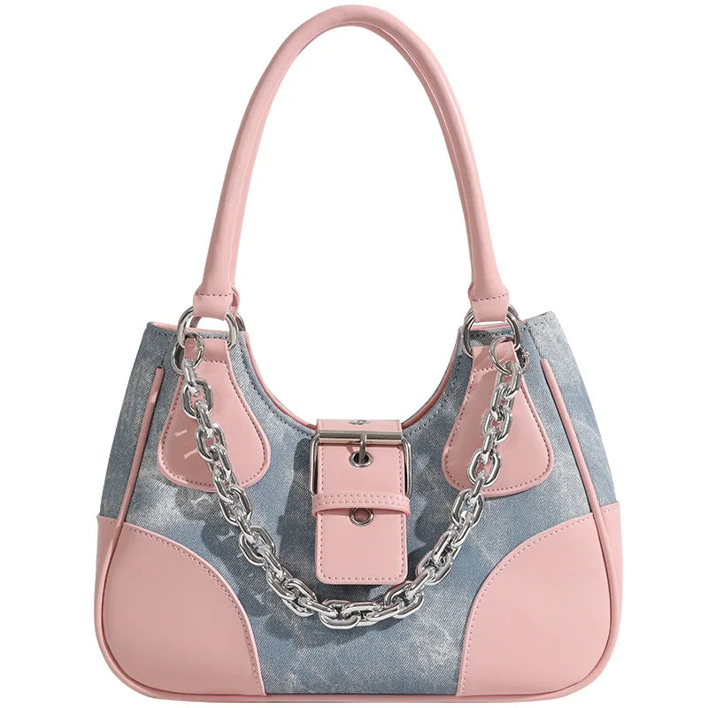 Women's Chain Crossbody Bag Half Moon Tote Winter PU Denim Handbag