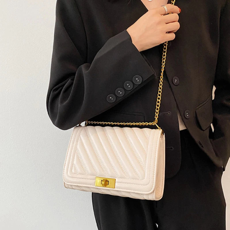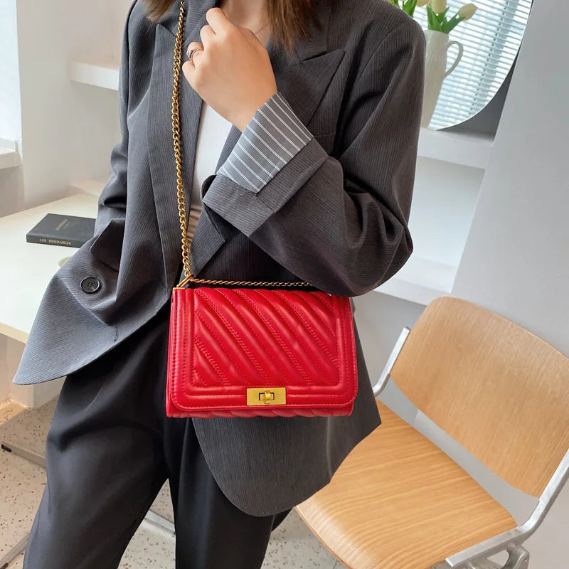 Elegant and stylish crossbody bag with a diamond lattice design, perfect for everyday use. Features a convenient chain strap and flap closure.