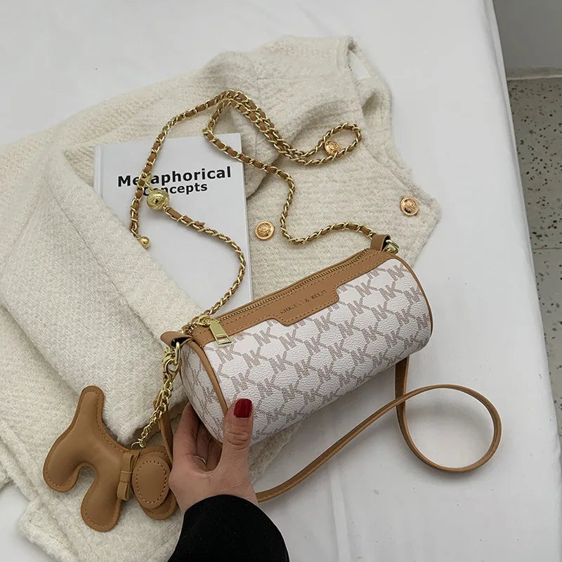 This small crowd shoulder bag is a versatile accessory for women. It can be worn as a shoulder bag, armpit bag, or messenger bag. The cylinder shape adds a unique touch, and the chain strap adds a stylish element. Perfect for carrying essentials while on the go.