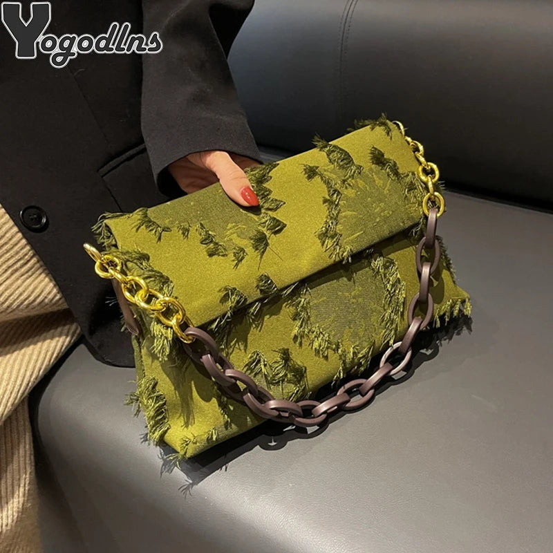 Women's Chain Shoulder Bag High Canvas Crossbody Tote