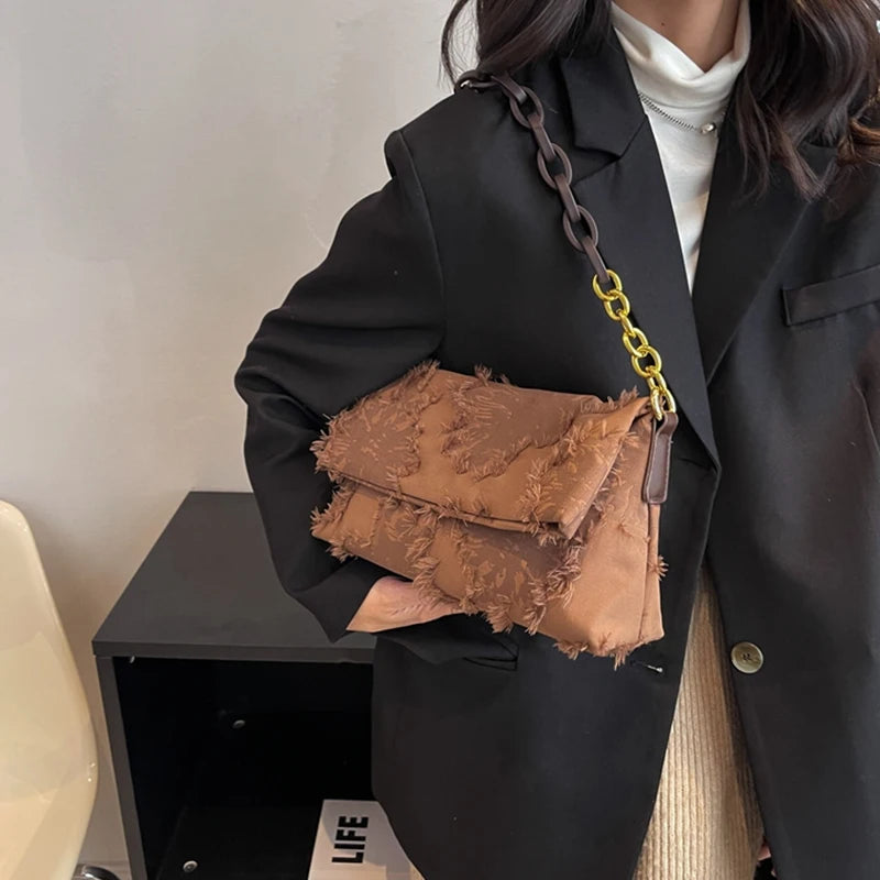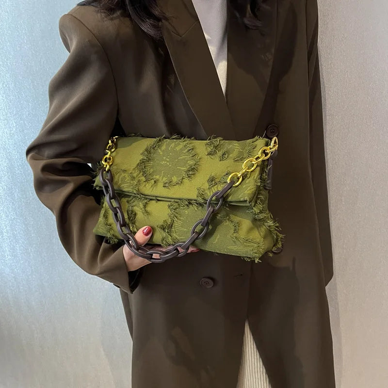 Elevate your style with this chic women's shoulder bag featuring a chain strap. Made of durable canvas, this handbag is perfect for daily use.
