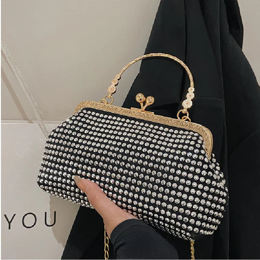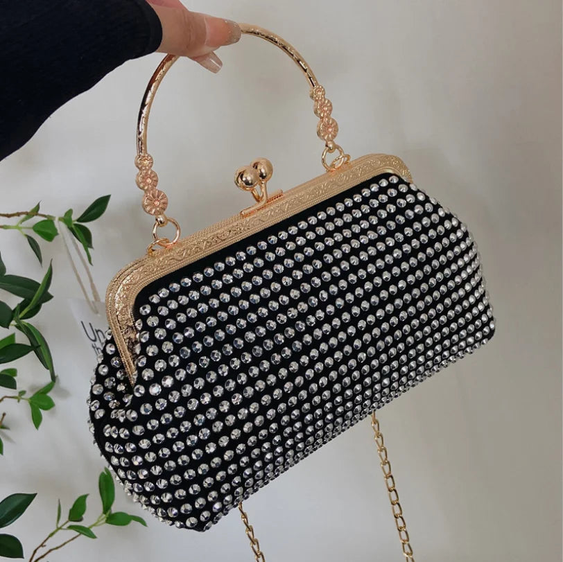 Women's Clip Buckle Chain Small Bag Diamond Handbag Evening Bag