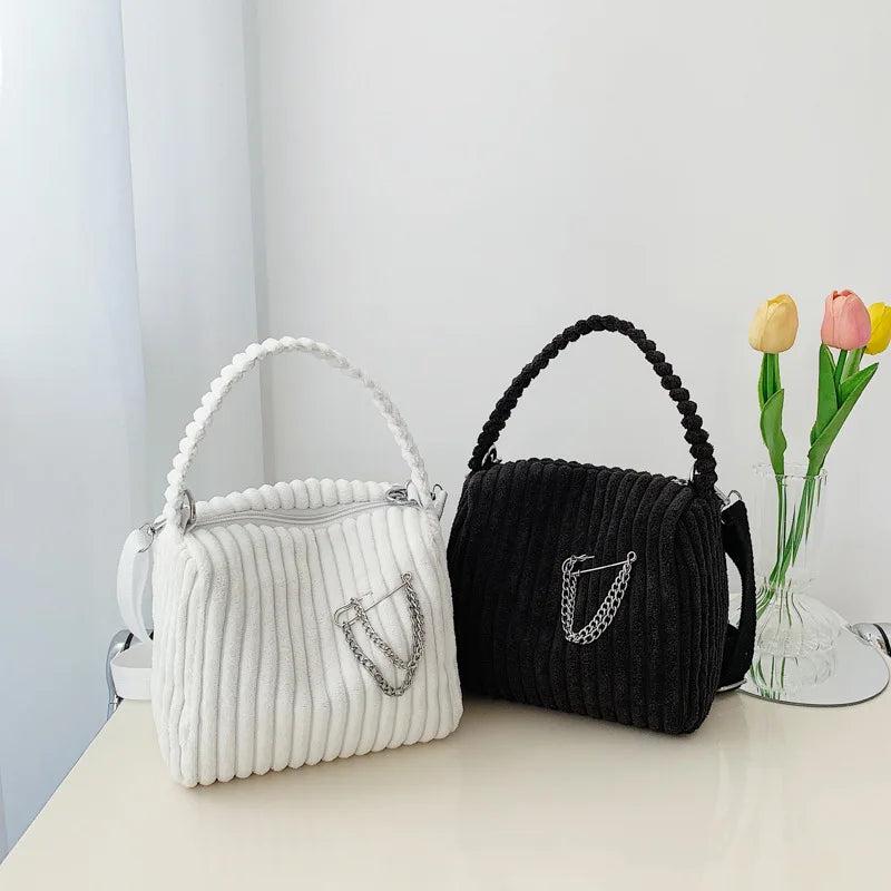This stylish women's shoulder bag is made of corduroy and canvas, perfect for everyday use.