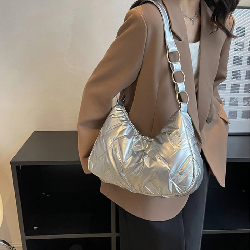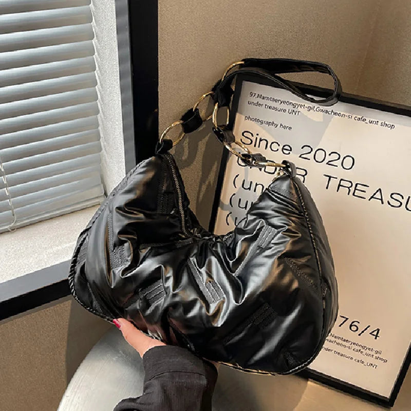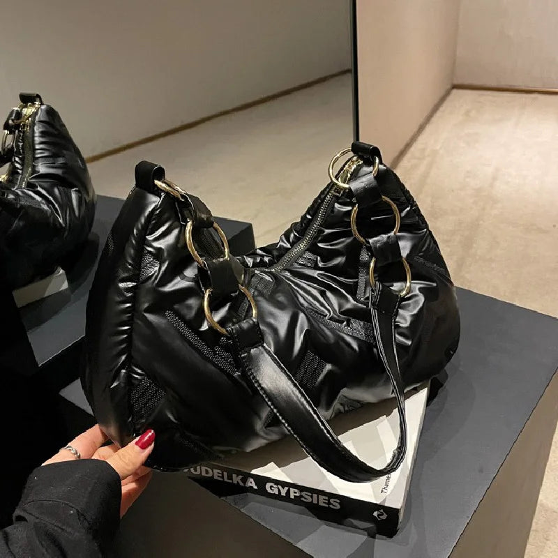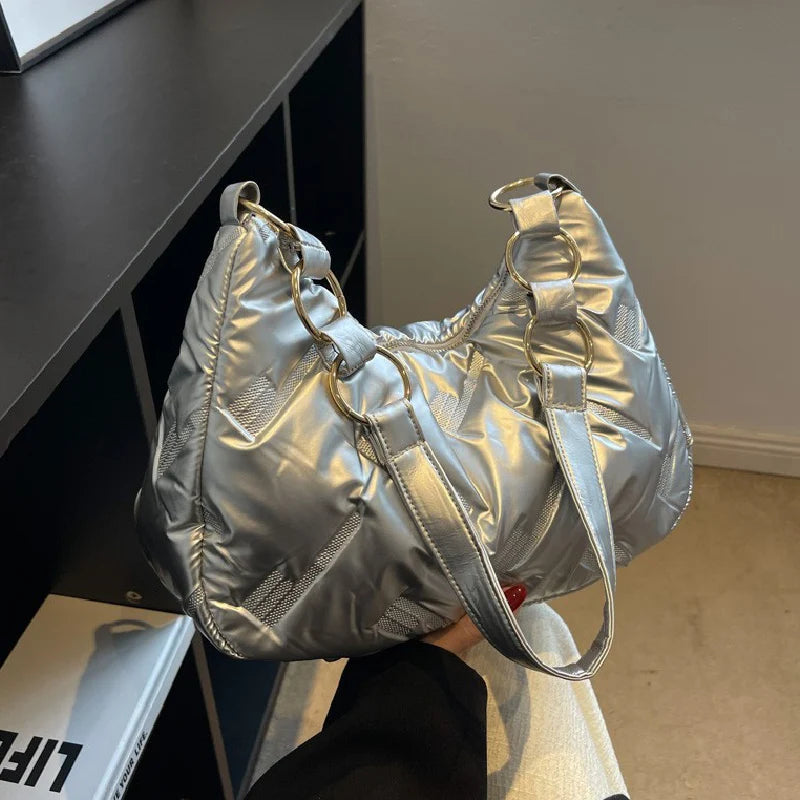 Stay cozy and stylish with this down shoulder bag made for the colder seasons. Perfect for shopping and everyday use.