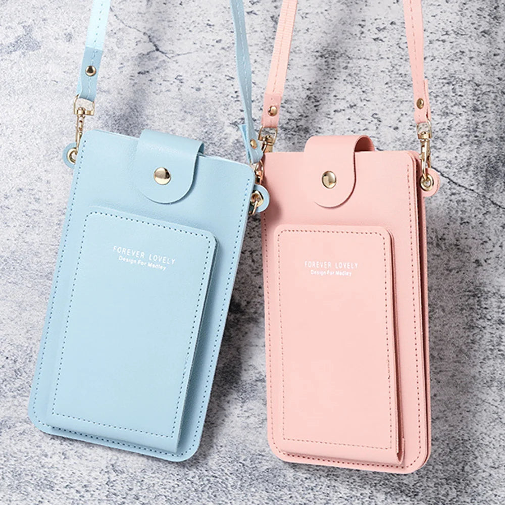 This PU mobile phone bag is designed for women to carry their essentials in style. It can fit Samsung, iPhone, Huawei phones and more. The versatile design allows it to be used as a shoulder bag, crossbody bag, purse, or clutch.