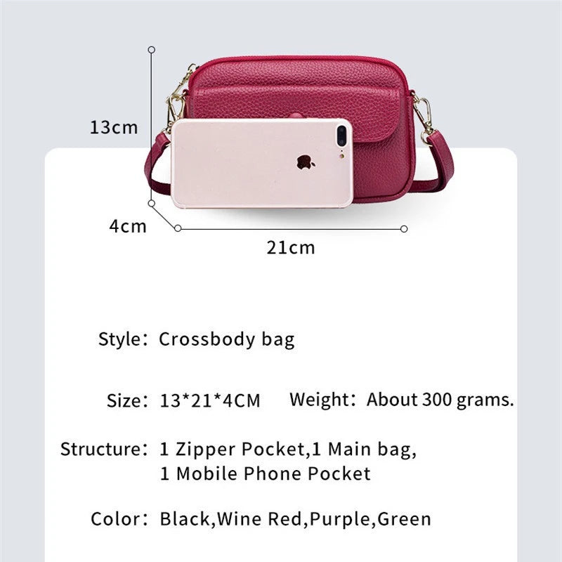 Women's Crossbody Bag Litchi Grain Cow Leather Small Shoulder Messenger Bag