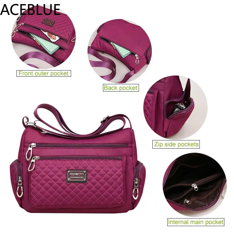 Women's Crossbody Bag Waterproof Nylon Plaid Shoulder Messenger Bags
