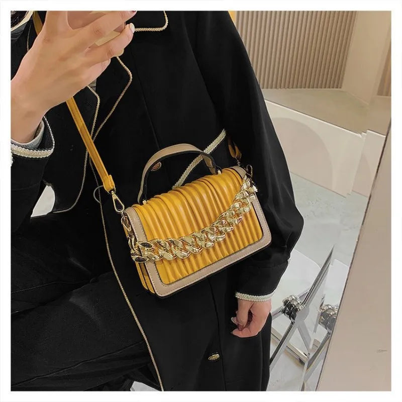 Women's Crossbody Bag with Chain Decoration - High Style and Luxe Design