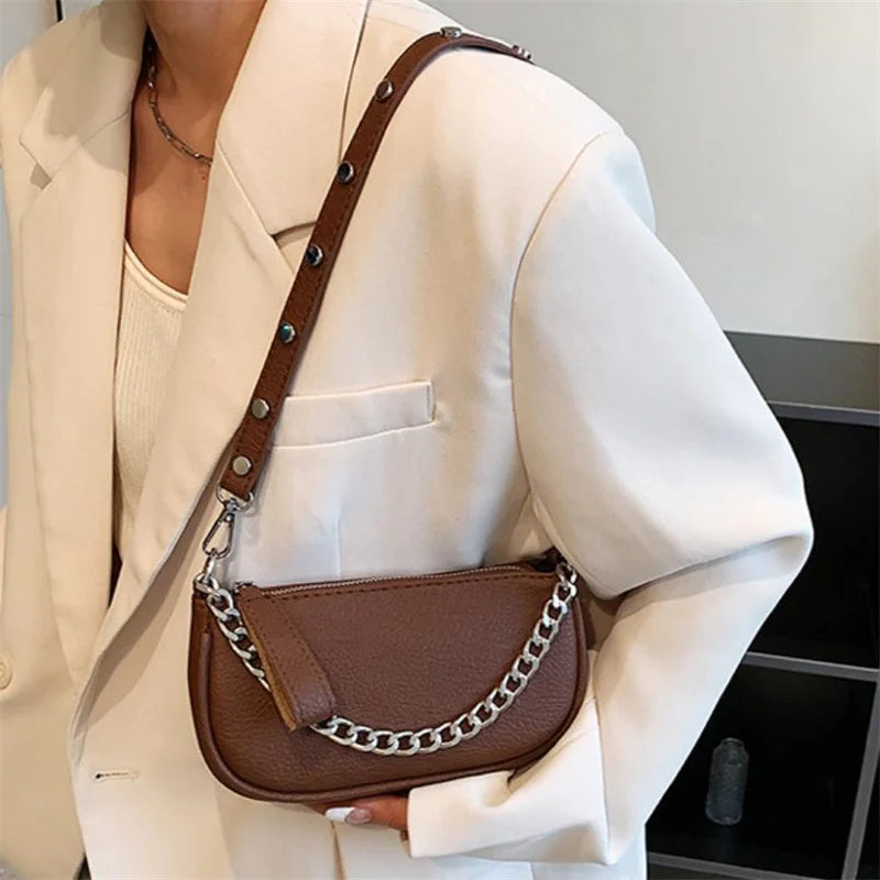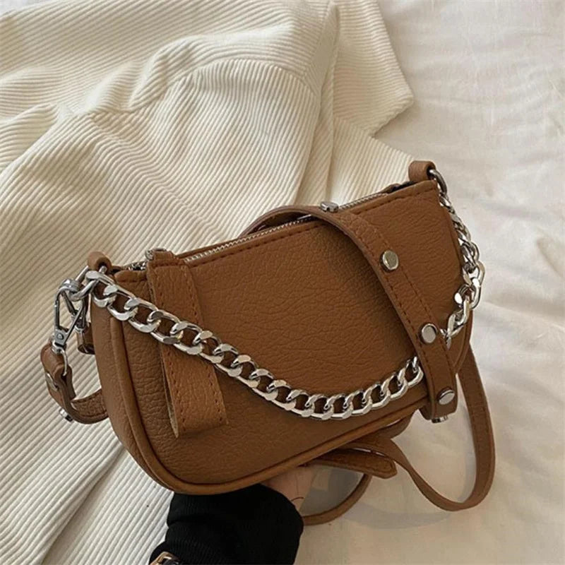 This versatile bag can be worn as a shoulder bag or crossbody bag, perfect for everyday use. It features a stylish chain detail and can hold your essentials.