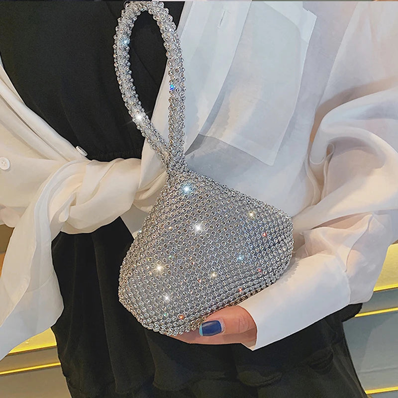 Elegant and stylish women's clutch bag perfect for weddings and evening events. Features diamond beads and a luxurious design.