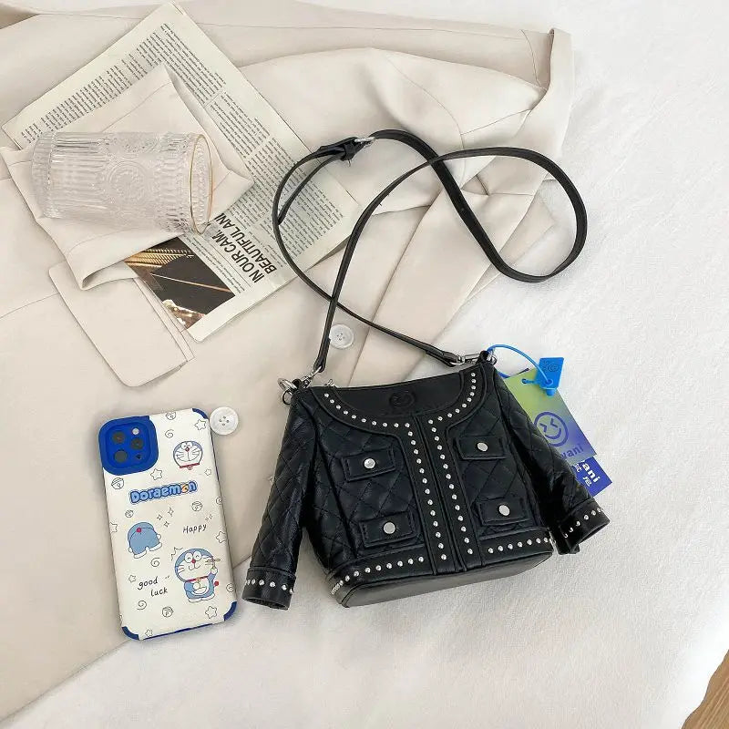 This creative jacket bag coat shaped handbag is a unique and stylish accessory for women.