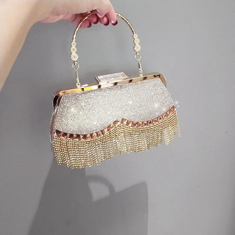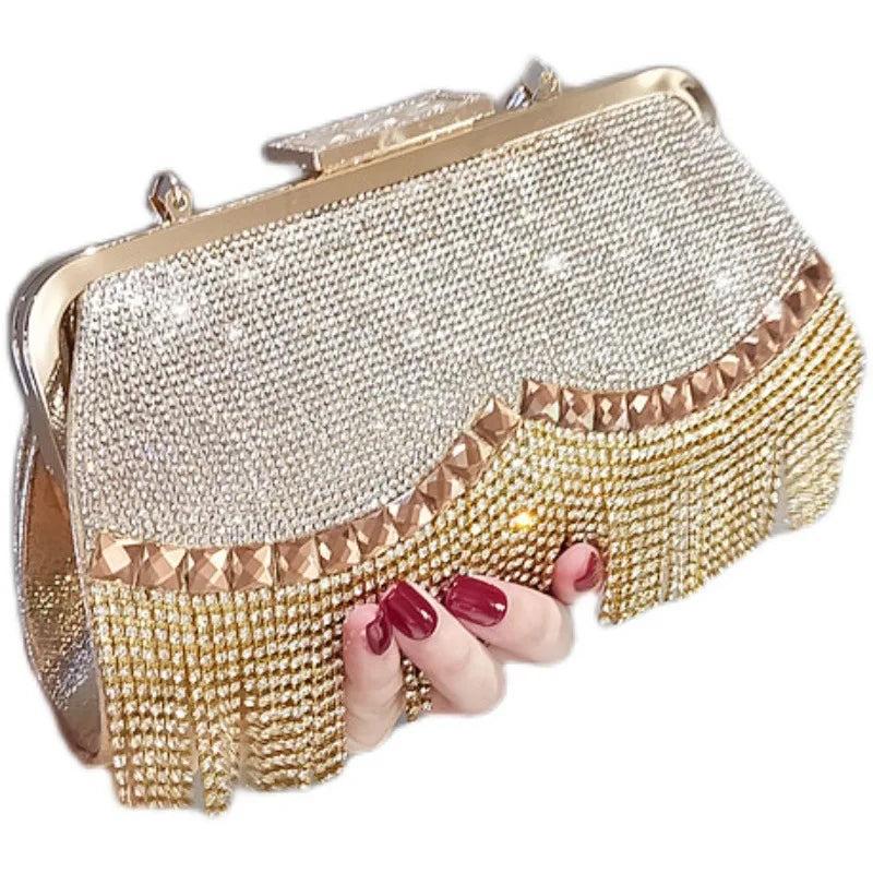 Women's Diamond Tassel Clutch Purse Party Bag Top Handle Evening Bags