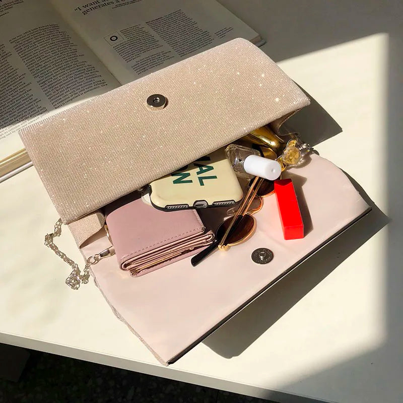 Description:This elegant evening bag is perfect for weddings, parties, and special occasions. It features a small chain shoulder strap for easy carrying.Features: Ideal for weddings, parties, and special occasions Elegant design with a small chain shoulder strap Compact size to hold essentials like phone, keys, and makeup Made of high-quality...