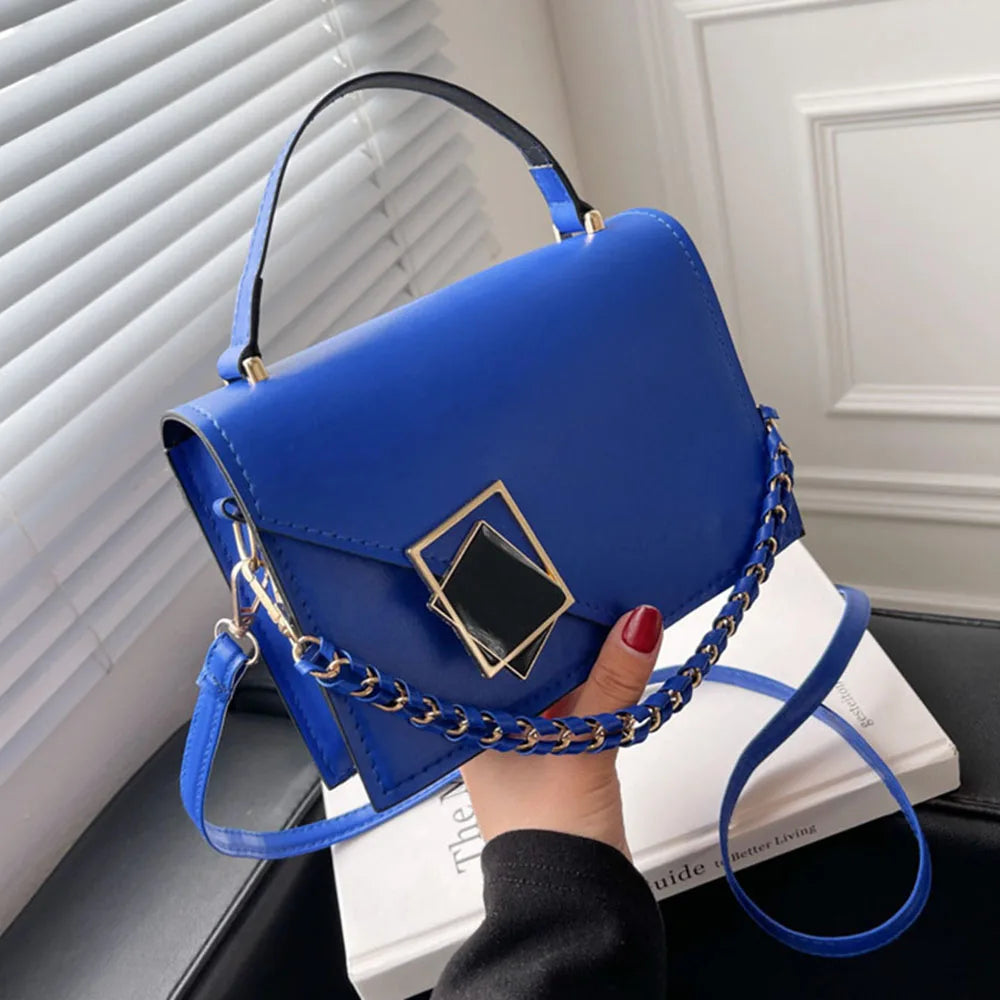 This stylish and compact crossbody bag features a flap design with a chic chain shoulder strap, perfect for carrying your essentials in style.