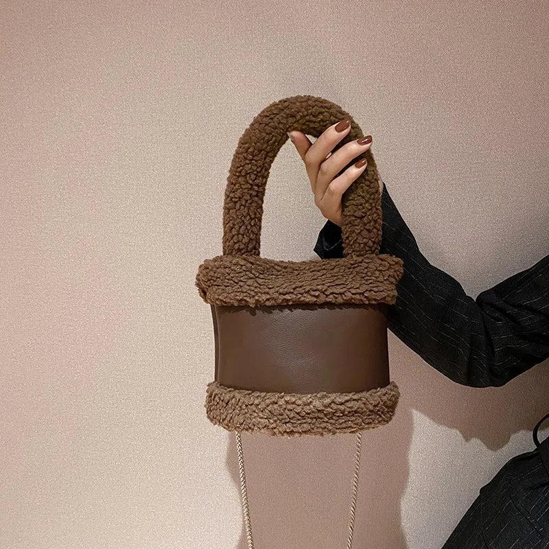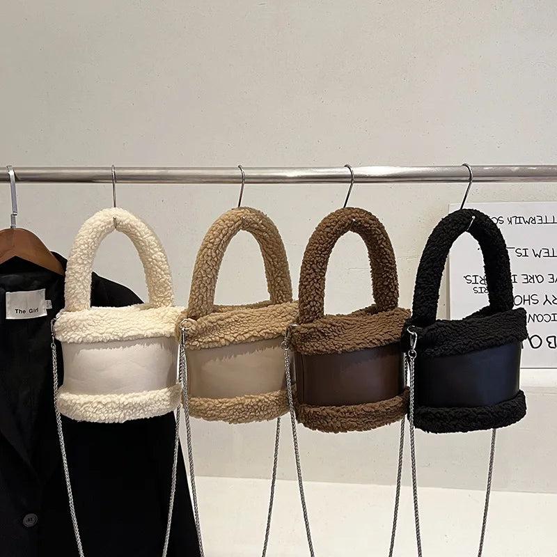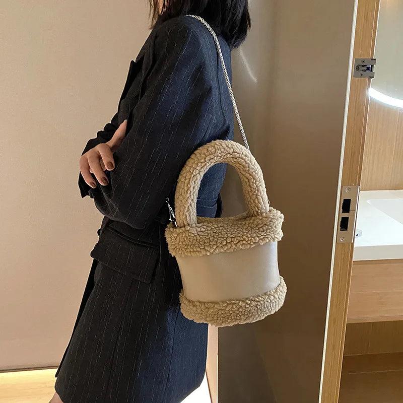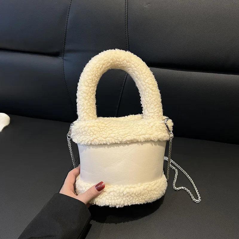 Women's Fluffy Winter Handbag Chain Diagonal Bucket Bag