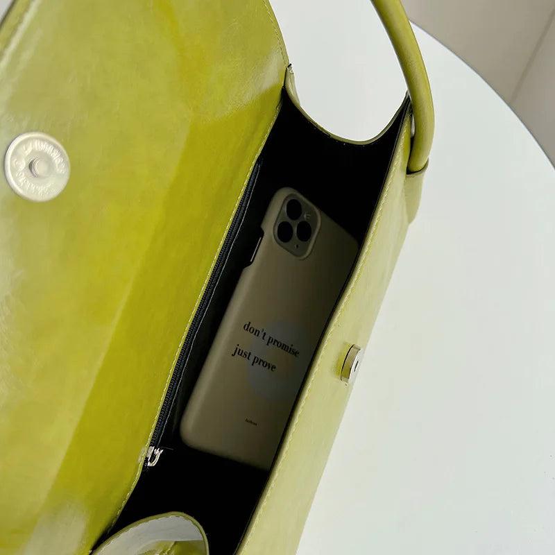 Elevate your style with this chic green shoulder bag made of high-quality PU leather. The flap design adds a touch of sophistication, making it perfect for daily use or special occasions.