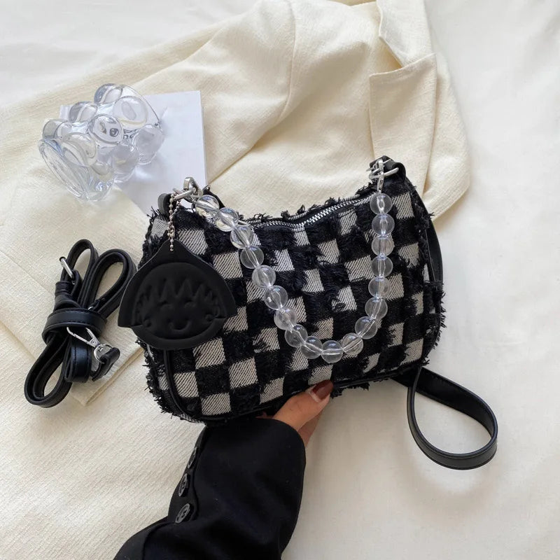 Stay stylish with this versatile denim shoulder bag that can be worn as a crossbody or tote. Perfect for everyday use.