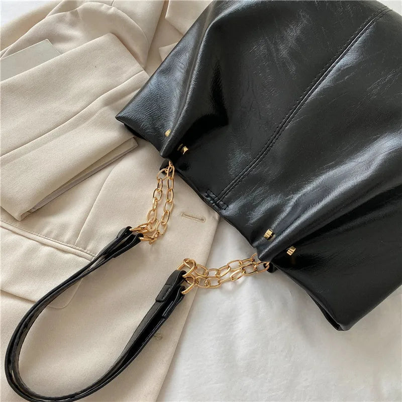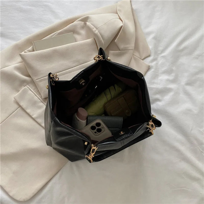 Women's Large Capacity Tote Bag Chain Texture Handbag