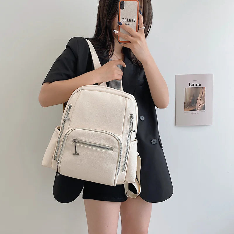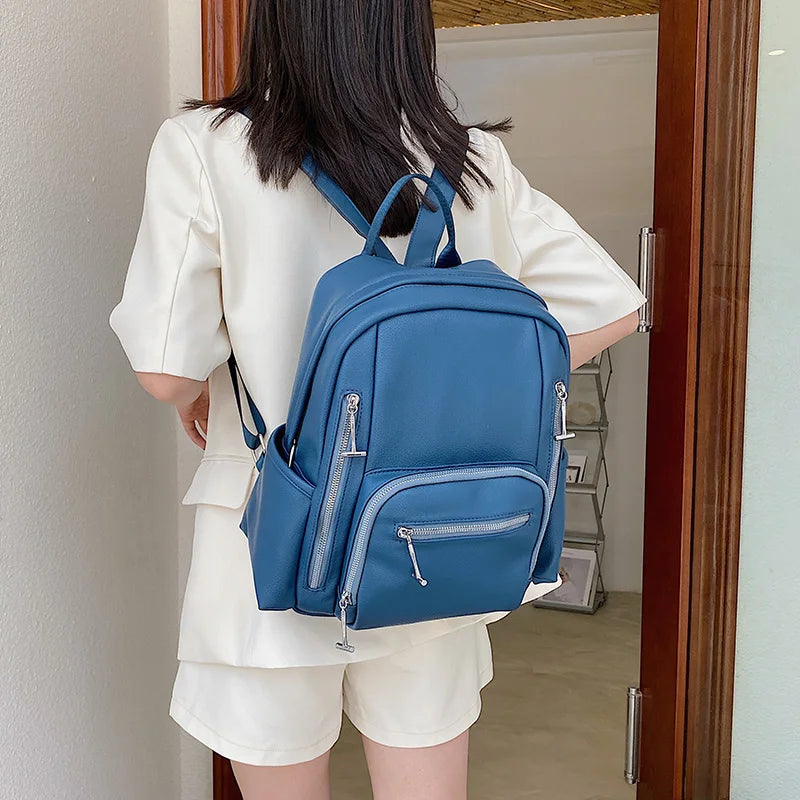 This stylish backpack is perfect for women on the go. Made of high-quality PU leather, it's durable and roomy enough to carry all your essentials. Use it for school, travel, or everyday outings.