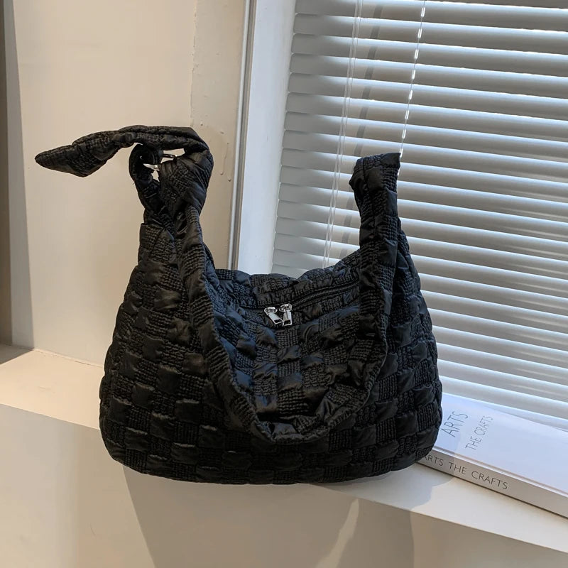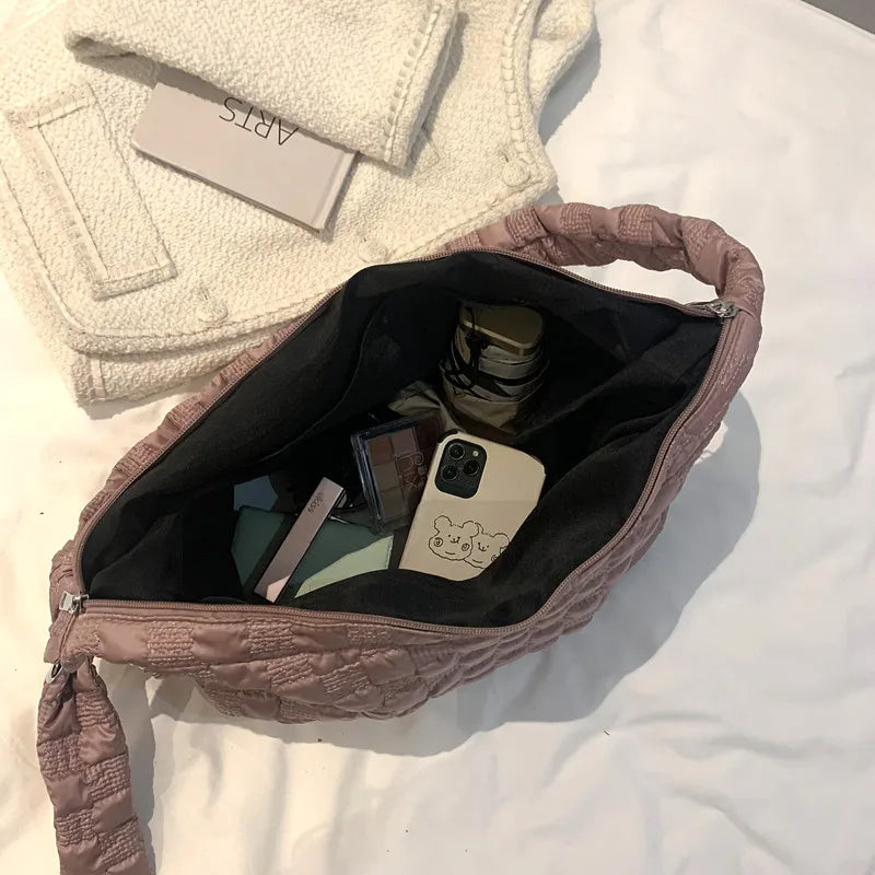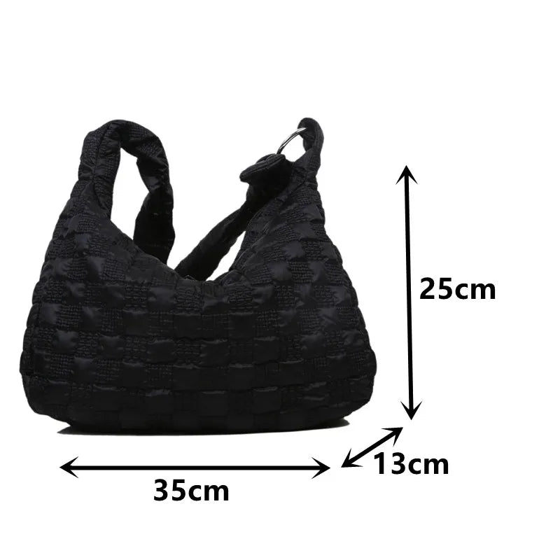 This stylish and spacious shoulder bag is perfect for all occasions. Made with high-quality down feather material, it offers a large capacity and a crossbody design. A versatile and fashionable accessory for women.