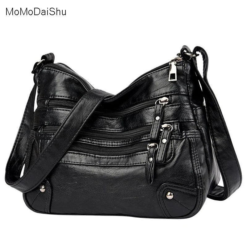 This women's shoulder bag is made of soft leather and features a multi-layer design, perfect for a classic and stylish look.