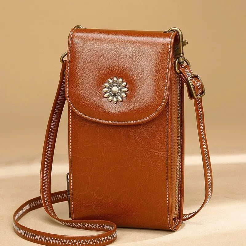 Women's Leather Shoulder Bag Mini Crossbody Phone Pocket Handbag