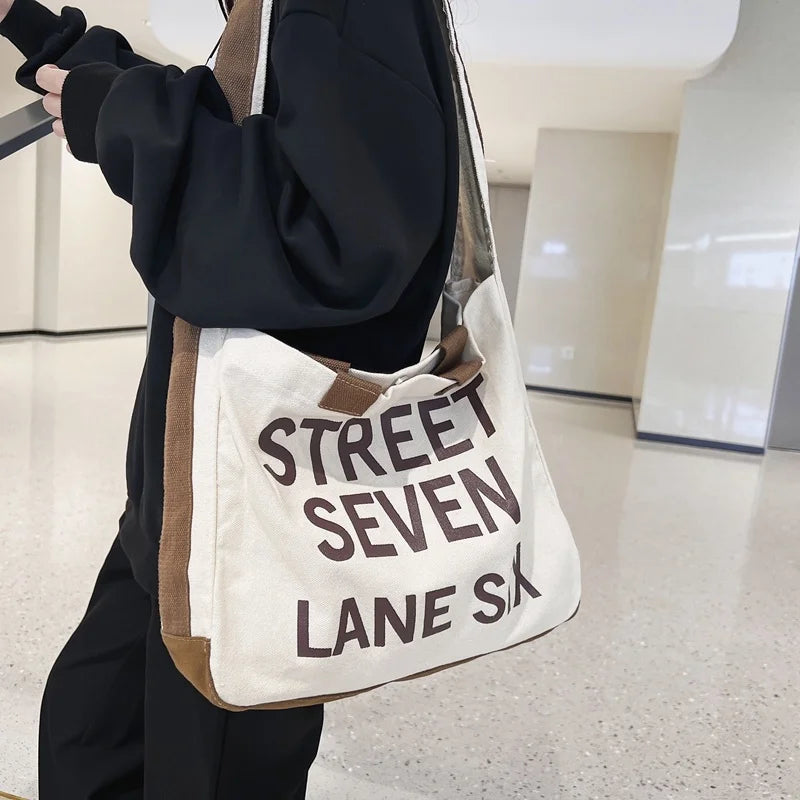 Women's Letter Canvas Crossbody Bag Tote Shopping Eco Bag