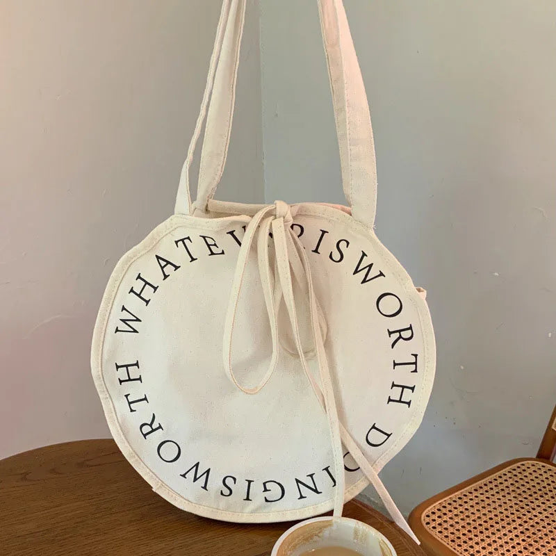 Women's Letter Canvas Round Shoulder Bag Large Capacity Casual Handbag