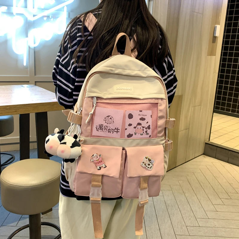 This trendy and stylish backpack is perfect for teenage girls. It is lightweight, durable, and spacious, making it ideal for school or everyday use.