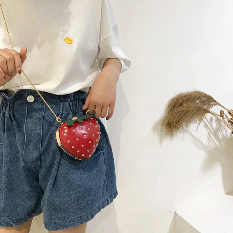 This adorable shoulder bag for women features a cute strawberry design and is made of high-quality PU leather. Perfect for carrying your essentials on-the-go.