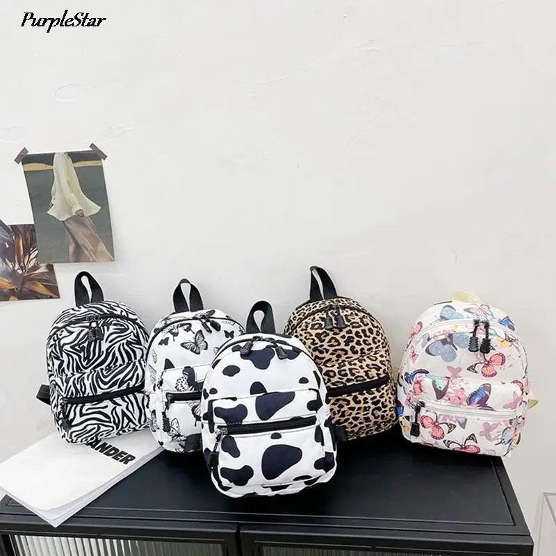 Women's Nylon Backpacks Butterfly Leopard Print Small Bag School Teen Girls