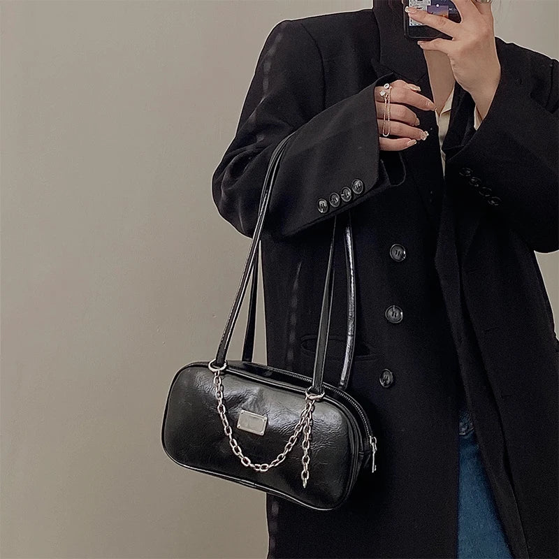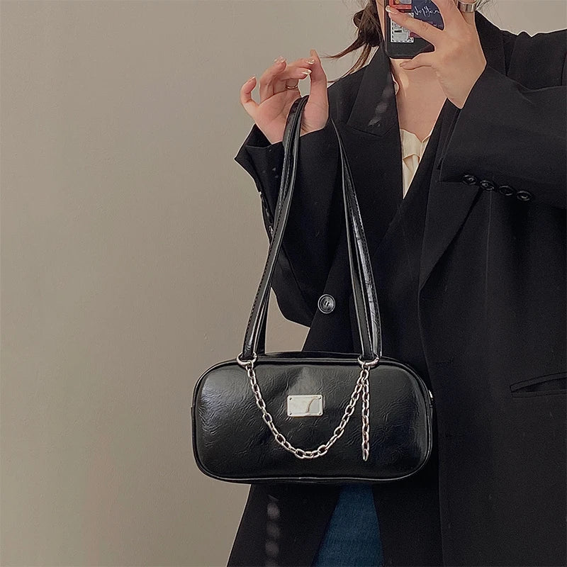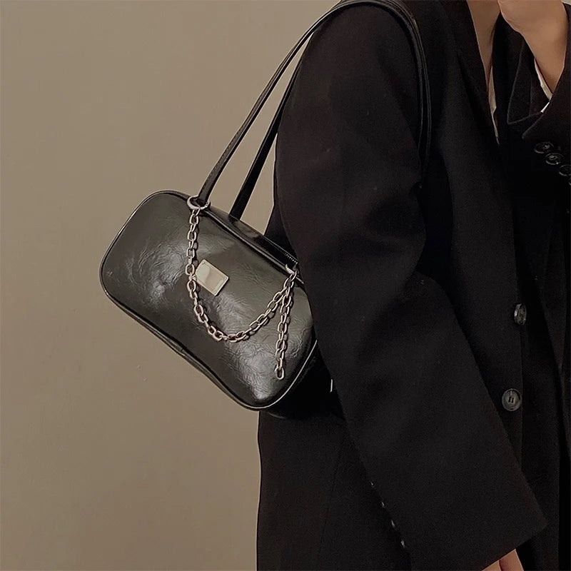 This retro chain bag is made of oil wax leather and offers large capacity. Perfect for daily commutes or casual outings.