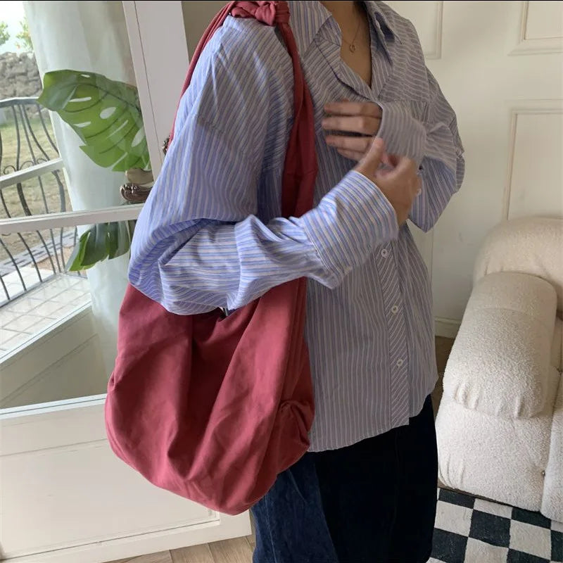 Women's One Shoulder Canvas Large Capacity Japanese Dumpling Commuting Tot Bag
