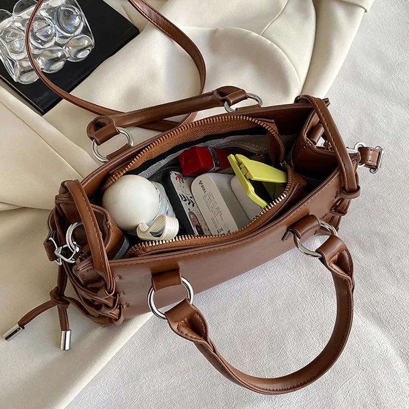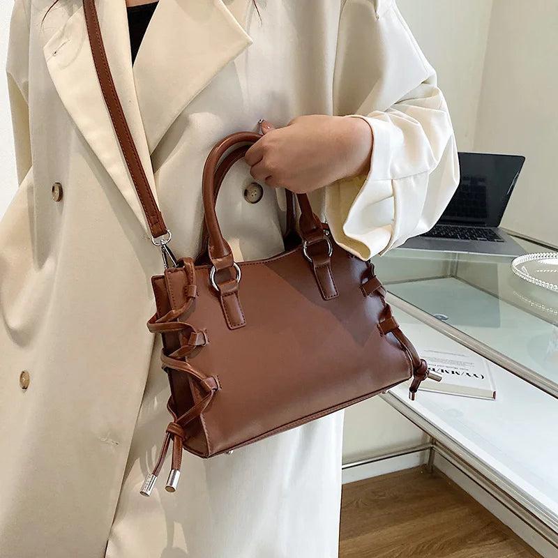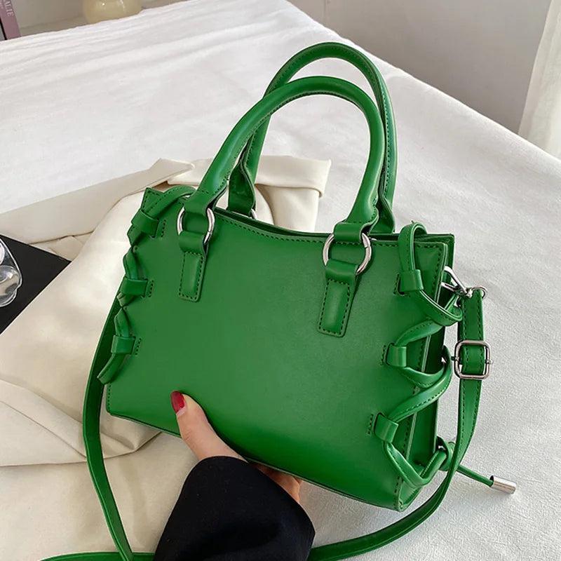 Stay stylish with this PU leather buckle handbag that can be used as a clutch or messenger bag.