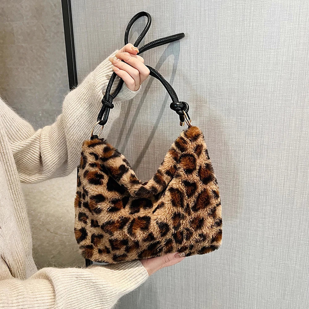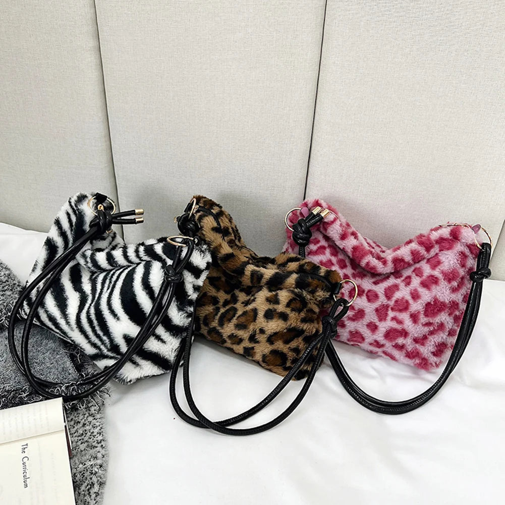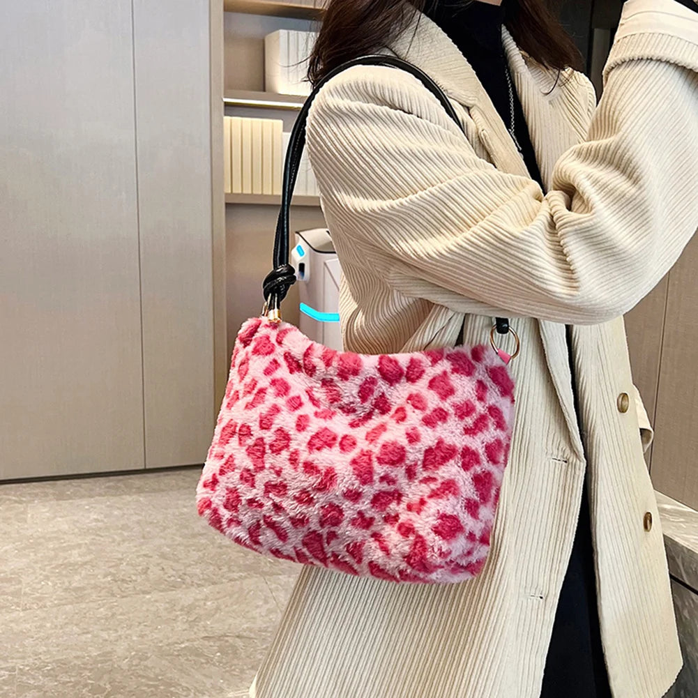 Elevate your style with this trendy pink leopard print faux fur tote bag. Perfect for carrying your essentials in style.