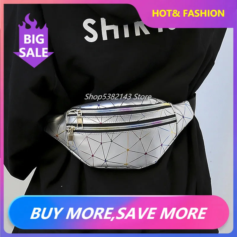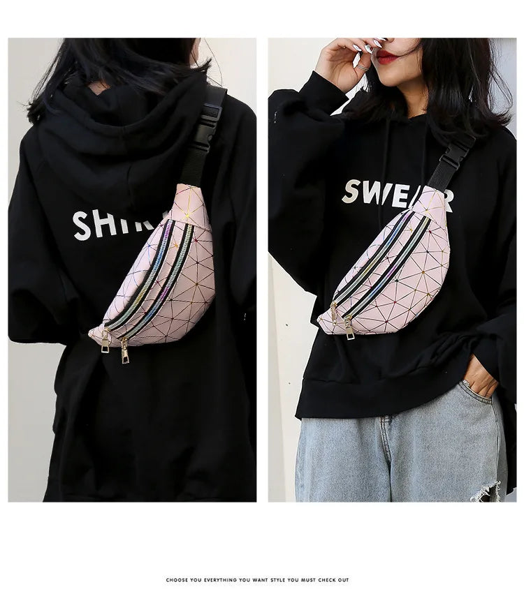 Women's Pink Silver Fanny Pack Geometric Waist Bag