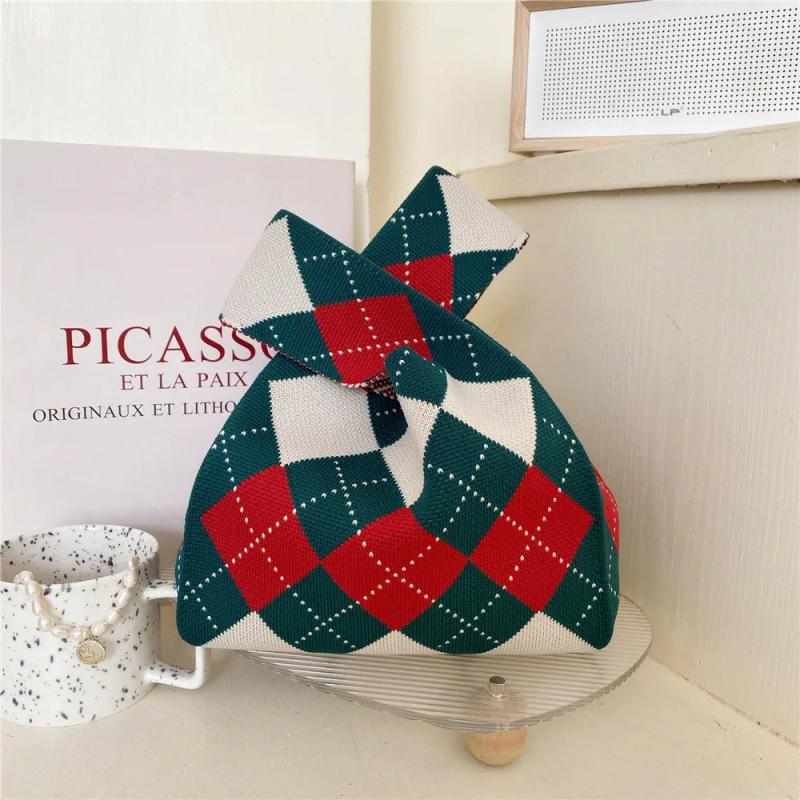 Stay stylish with this fashionable plaid matching knitted handbag for women. Perfect for casual outings and versatile enough for various occasions.