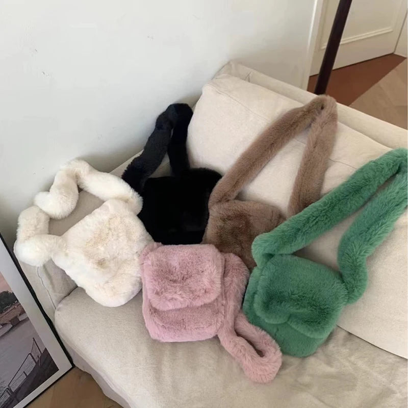 Women's Plush Crossbody Bag - Flap Shoulder Wall