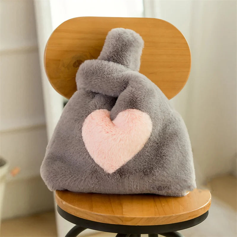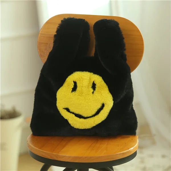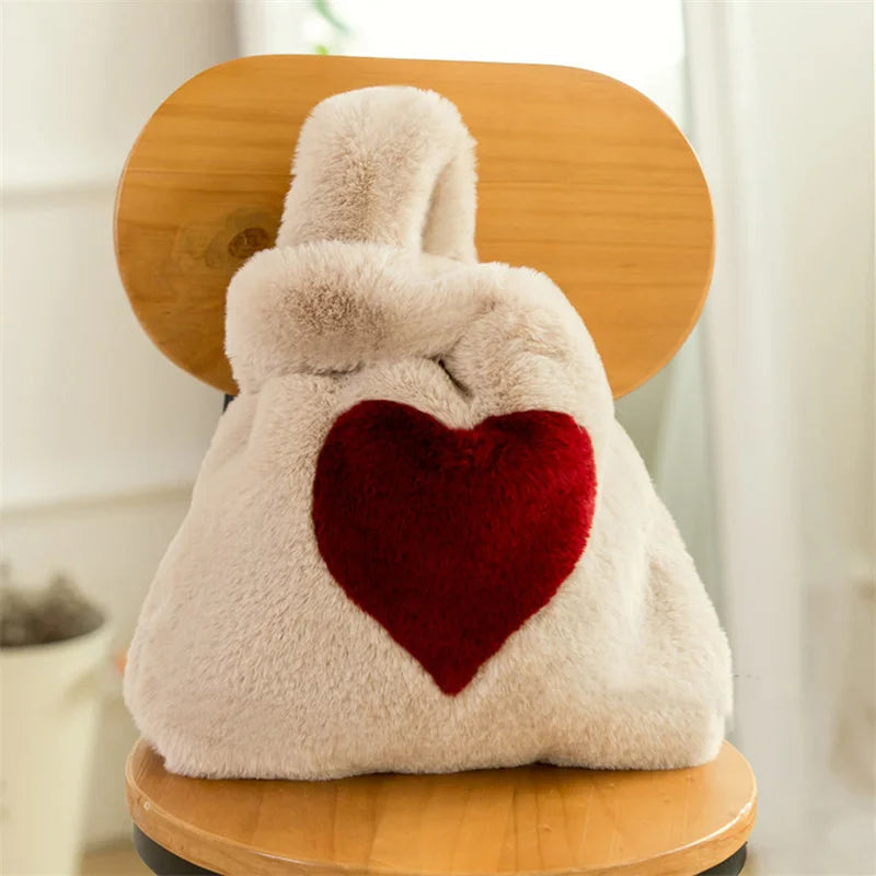 Women's Plush Fur Tote Bag Winter Shoulder Street Travel Bag