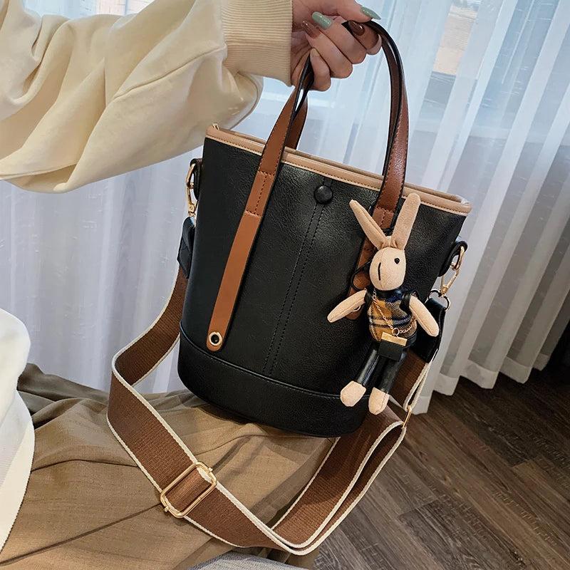 Women's PU Leather Bucket Bag Casual Crossbody Shoulder Handbag