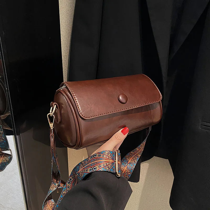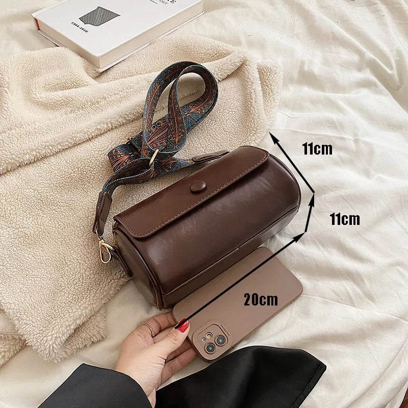 This handbag is made of high-quality PU leather, suitable for everyday use. It can be worn as a crossbody or shoulder bag.