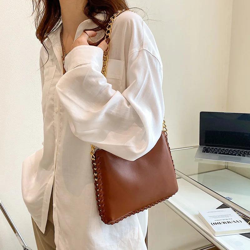 Women's PU Leather Chain Axillary Bags Ladies Solid Handbags And Purse