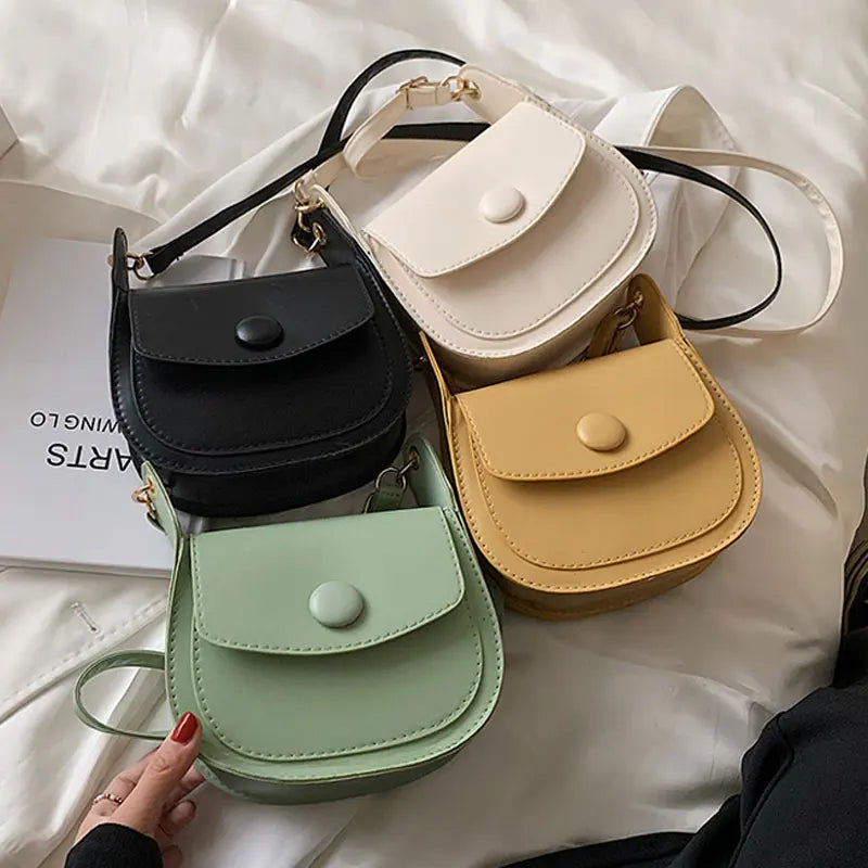 This stylish shoulder bag is made of high-quality PU leather, perfect for any occasion. It features a mini crossbody design and a convenient saddle bag shape.