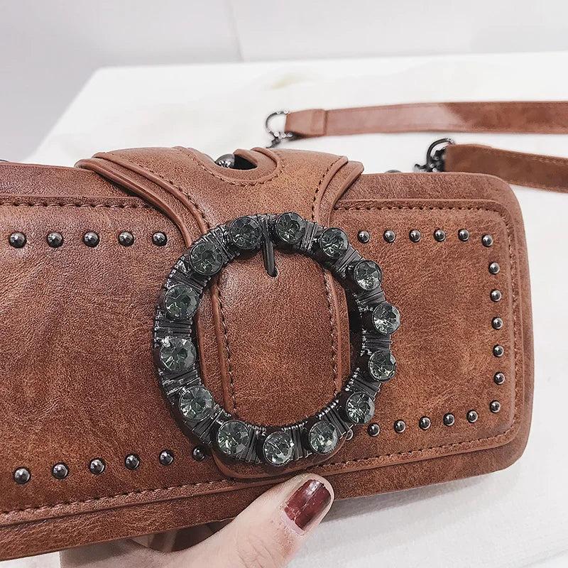 Women's PU Leather Shoulder Bag Studded Diamond Mini Crossbody