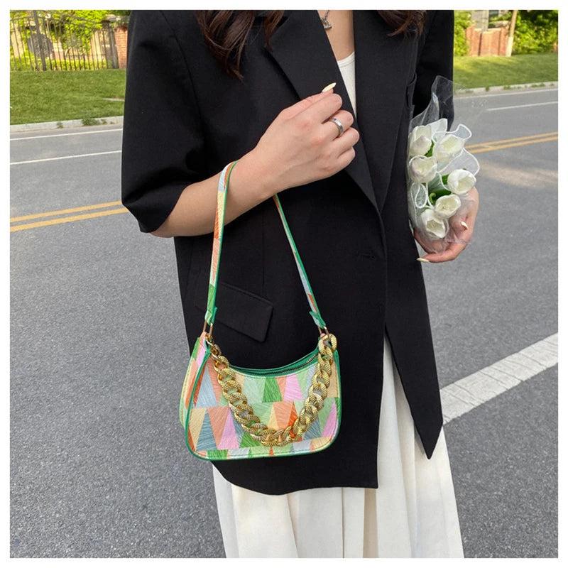 Elevate your style with this chic underarm shoulder bag made of high-quality PU leather. It features a unique chain design and offers ample space for your essentials.