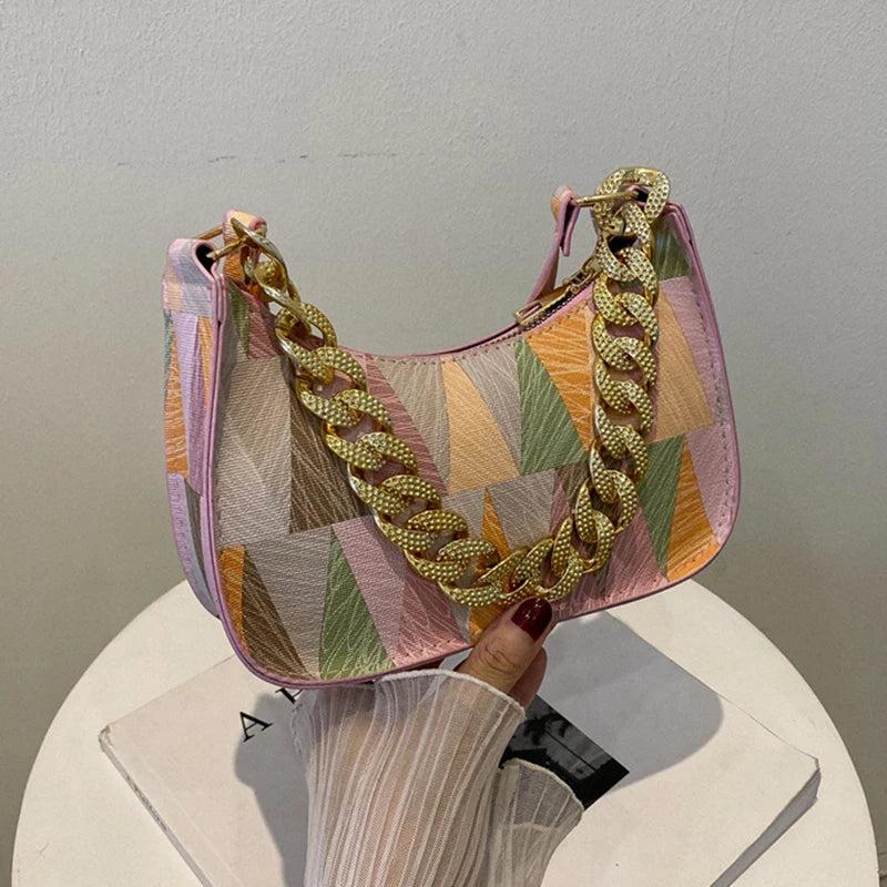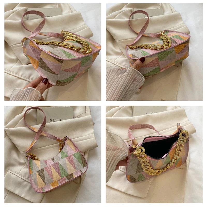 Women's PU Leather Shoulder Bag with Chains Handbag